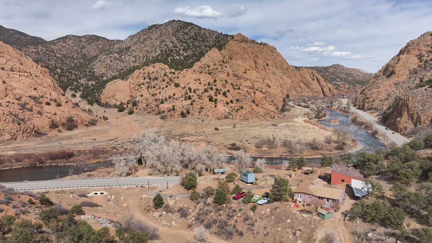 One of the few privately-owned stretches of the Arkansas River of this scale featuring both banks between Salida and Cañon City, Bighorn Canyon Fish Camp delivers control over some of the finest trout water in Colorado. While the Arkansas Headwaters Recreation Area offers over 150 miles of fishing access with almost 100 public access sites, private holdings of this size are uncommon. “The Ark” is a Gold Medal fishery spanning about 102 miles with between 1,500 and 4,000 trout per mile. Rafts and drift boats can be launched directly from the property for float fishing or leisure floats, as well as from numerous public boat ramps. World-class whitewater including Browns Canyon National Monument and the Royal Gorge are within an hour’s drive. The property borders nearly a mile of BLM lands and about half a mile of State Trust Lands. Kuntz Gulch on the south end of Bighorn Canyon Fish Camp provides nearly exclusive entry into over 3,000 acres of rugged BLM lands, which very few can reach. For hunters and backcountry enthusiasts, this kind of access is challenging to replicate in this area. Adjacent public lands provide essentially limitless opportunities for hunting, hiking, biking, and exploring this rarely seen country.